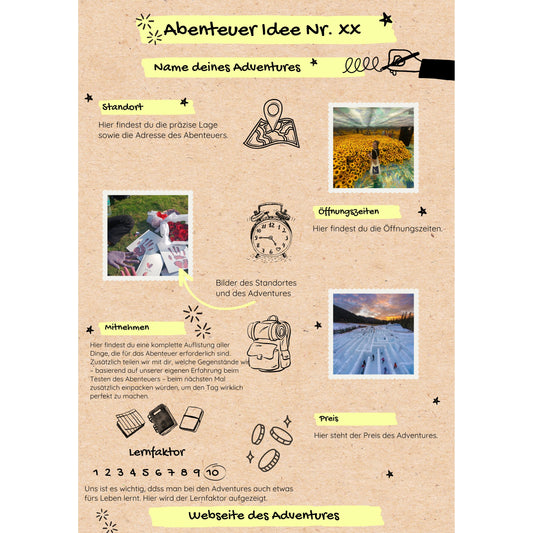 Ja, wir haben darauf geachtet, dass unsere Abenteuerideen sowohl für sonnige Tage als auch für schlechtes Wetter geeignet sind. Unser Ziel ist es, dass Familien jederzeit und unabhängig von den Wetterbedingungen die Möglichkeit haben, spannende und bereichernde Erlebnisse zu geniessen. In unseren eBooks findet ihr daher eine Vielzahl von Aktivitäten, die drinnen, draußen und bei jeder Wetterlage durchgeführt werden können. So könnt ihr auch an Regentagen oder wenn das Wetter nicht mitspielt, wertvolle und spassige Momente mit euren Kindern erleben.