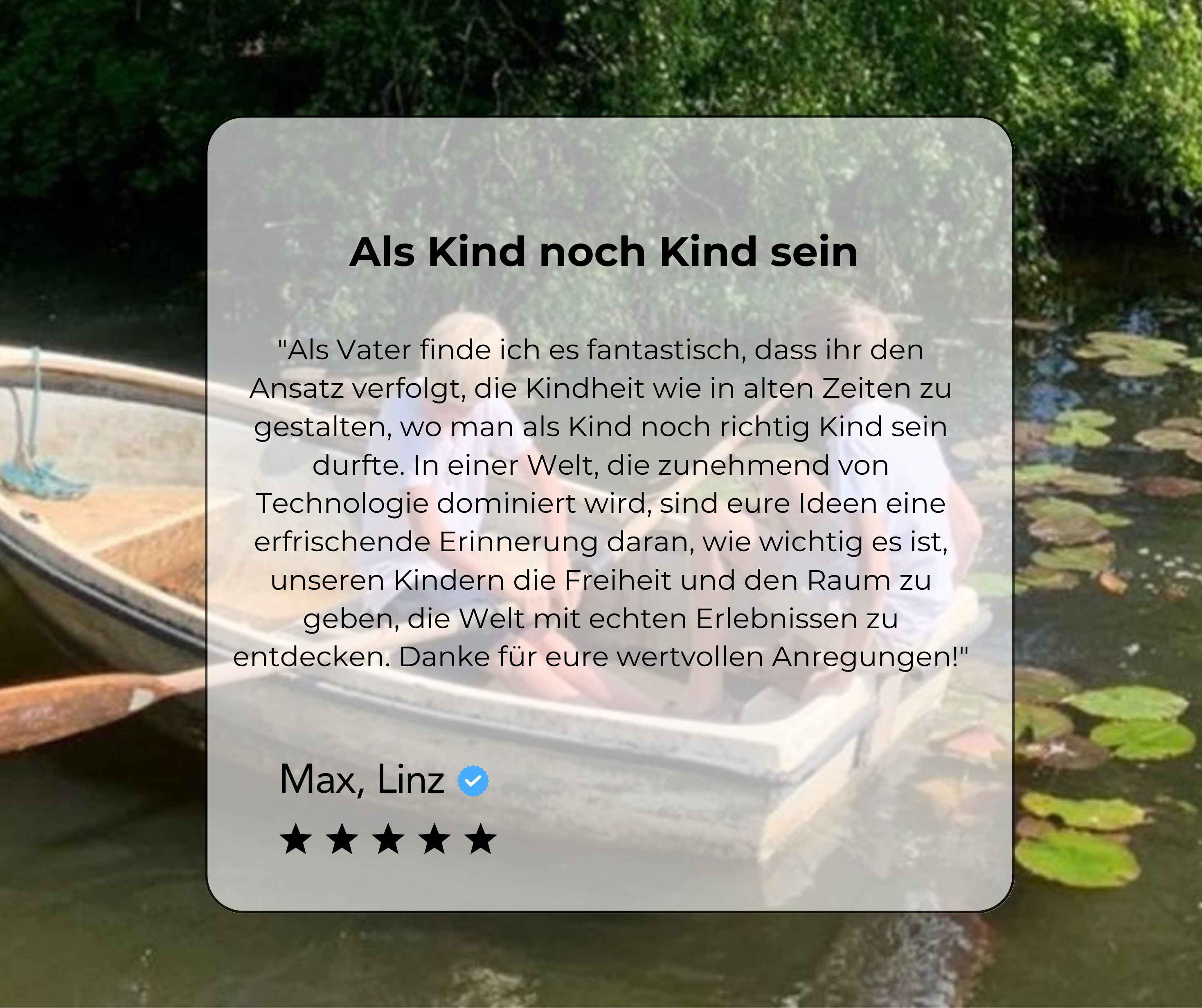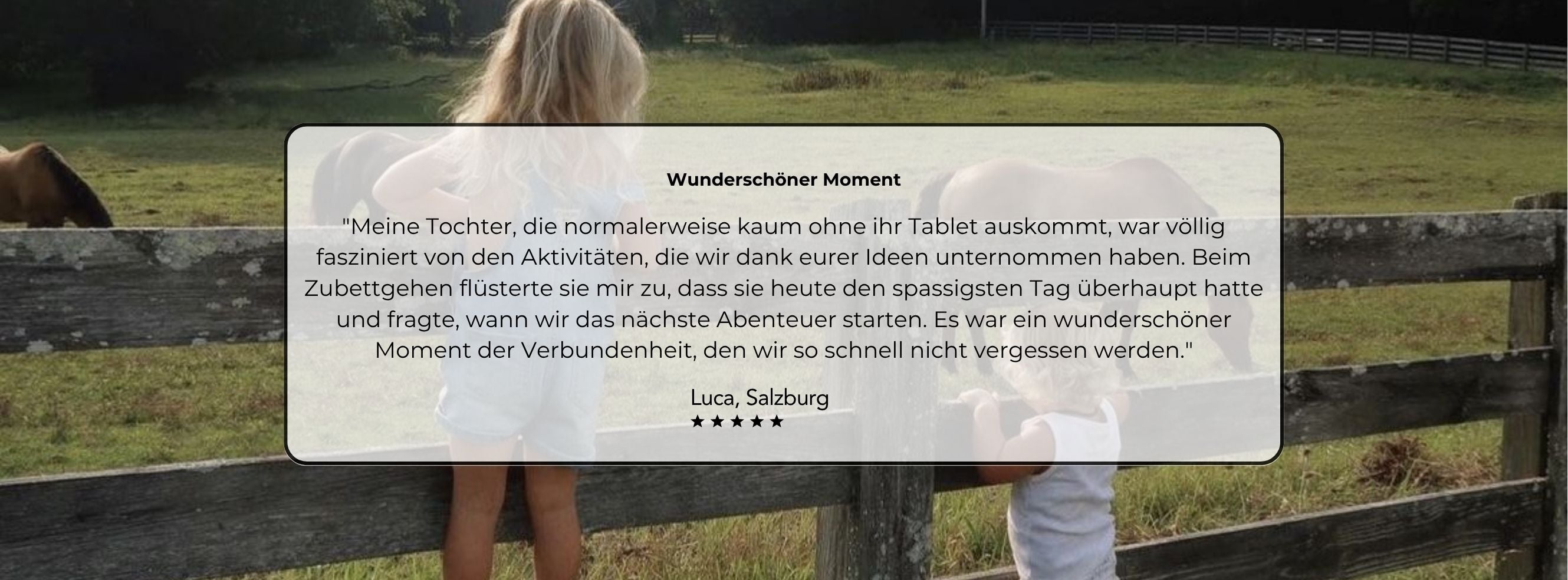 Unsere Ideen zeichnen sich durch ihre einzigartige Kombination aus Zugänglichkeit, Flexibilität und Fokus auf echte, unvergessliche Erlebnisse aus. Wir legen Wert darauf, dass jede Familie, unabhängig von ihrem Budget, qualitativ hochwertige Zeit miteinander verbringen kann. Unsere Abenteuer sind speziell darauf ausgerichtet, Kinder weg von Bildschirmen und hin zu echten Erlebnissen zu führen. Durch unsere eigenen Erfahrungen als Eltern und das Testen jeder Aktivität mit unseren Kindern stellen wir sicher, dass jede Idee nicht nur Spass macht, sondern auch zur persönlichen Entwicklung beiträgt. Unsere Abenteuer sind für alle zugänglich, da sie mit öffentlichen Verkehrsmitteln erreichbar sind und für jedes Alter massgeschneiderte Optionen bieten. Dadurch, dass wir die Aktivitäten in drei Alterskategorien unterteilt haben, garantieren wir, dass sie altersgerecht sind und sowohl die physische als auch die mentale Sicherheit der Kinder gewährleisten. Diese durchdachte Herangehensweise macht unsere Ideen zu einem unvergleichlichen Erlebnis für Familien, die gemeinsam wachsen und die Welt entdecken möchten.